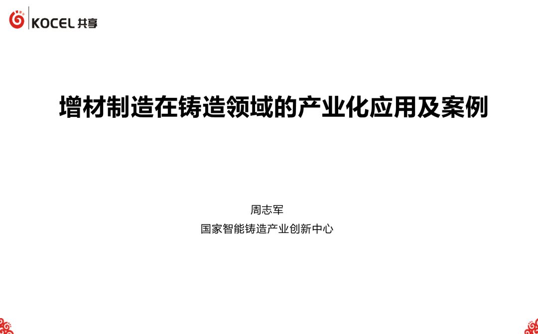 增材制造产业联盟:2019年5月9日下午,增材制造产业发展推进会在陕西渭南“中国增材制造产业发展丝路行”活动期间举行。会上,国家智能铸造产业创新中心高级专家周志军做了《增材制造在铸造领域的产业化应用及案例》报告,主要内容包括增材制造技术在铸造领域的应用、3DP技术及FDM技术在铸造领域的产业化应用及案例、3D打印铸造智能工厂案例等,现与大家分享学习~