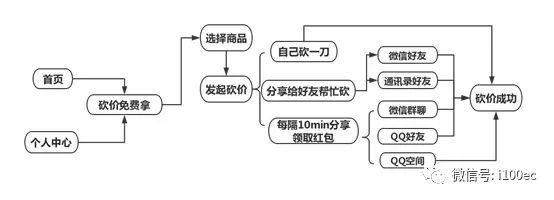 用户可以通过分享给微信或者QQ好友等方式邀请好友帮自己砍价,只要用户能邀请足够的人帮自己砍价就有机会免费获得自己心仪的商品,这已经成为拼多多获取用户裂变式增长的主要方式。