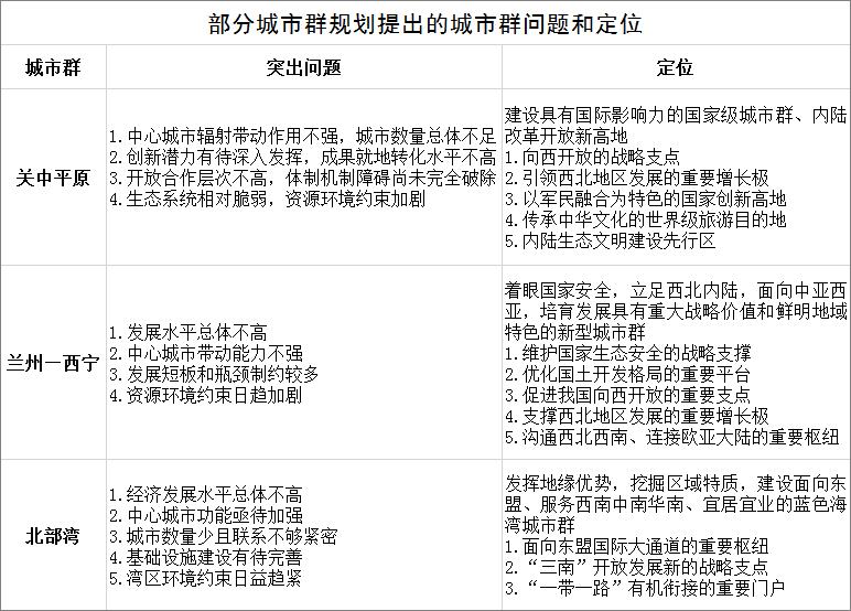 国务院批复的部分城市群规划中提出的相应问题与定位 整理:城市进化论