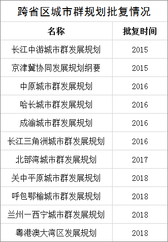 抱团发展,规划先行。公开资料显示,2015年至今,国务院共批复11个城市群规划,全国19个城市群规划全部编制完成,跨省城市群规划均已出台并实施。