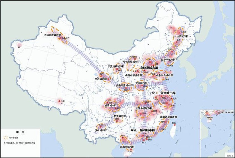 目前,全国已经基本确定“19+2”城市群分布格局——19个城市群,加上以新疆喀什和西藏拉萨为中心的两个城市圈。