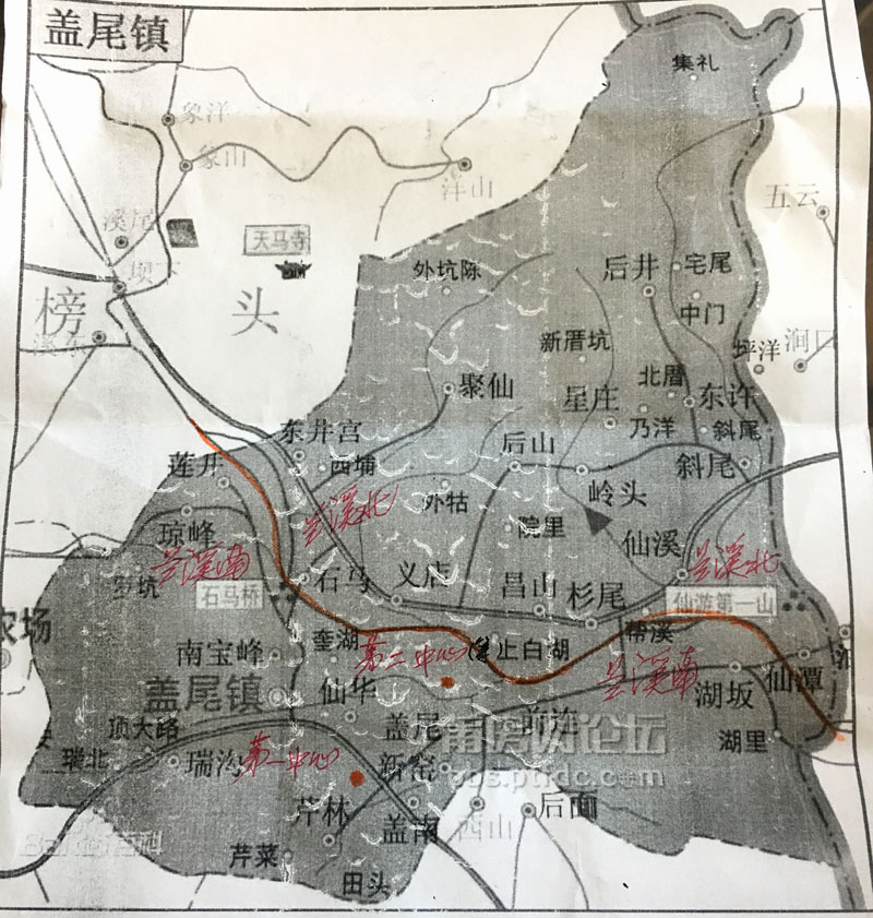 图:盖尾镇地图,目前镇人口11万,木兰溪将盖尾镇分为南北两岸。