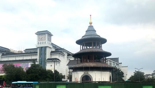 扬州明代文昌阁大修,三层屋面古貌再现。 崔佳明 摄