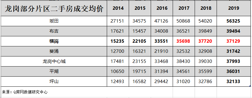 龙岗中心城片区二手住宅价格近五年来持续上涨,尤其在2014年-2016年期间,以每年近9000元/㎡的增长幅度持续上涨。