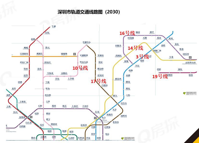 根据深圳市轨道交通线网规划(2016-2030)的龙岗区中部交通枢纽规划,未来与市内互通的线路有4条地铁线( 3、14、16、21 交汇)+有轨电车,除21号线外,其他地铁线路、有轨电车预计2022年前可运营。地铁10号线明年即开通,未来龙岗与福田的距离再一次被缩短。
