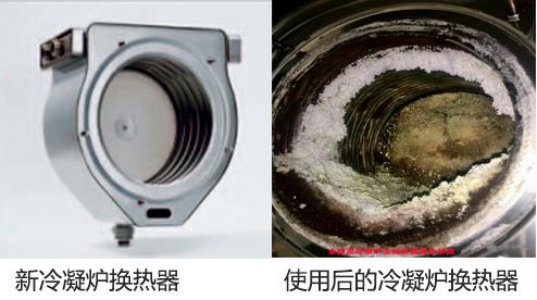 众所周知,冷凝壁挂炉最大优点就是节能和环保,但他们对水质和燃气质量要求也更高和更严格,因为水质和燃气质量会严重影响冷凝炉省气程度以及主换热器售后服务成本和主换热器使用寿命。下图为新主换热器和使用一段时间主换热器的效果对比。