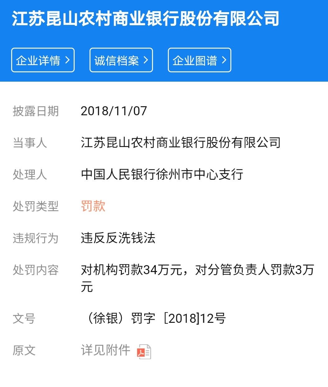 实际上,近两年来,昆山农商行已经多次挑战监管层底线。据《江苏金融湃》不完全统计,仅仅在2018年,该行就因为“违反反洗钱法”被监管层两次共计罚没80万元,另有分管负责人被合计处罚4.5万元。