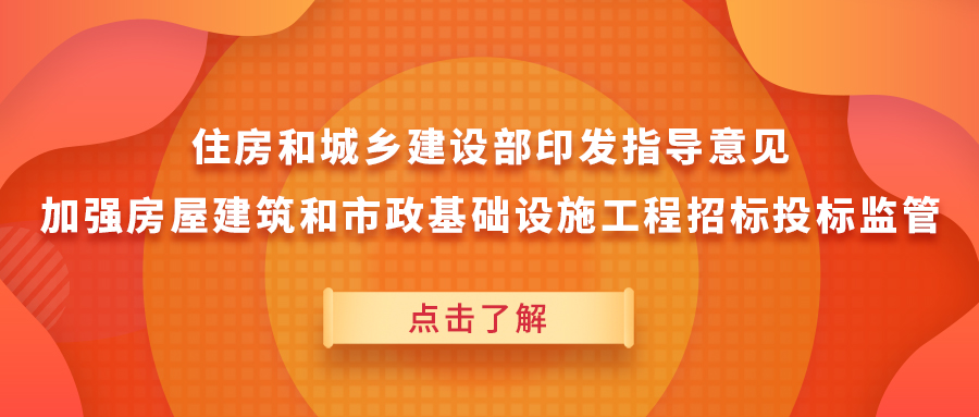 近日,住房和城乡建设部印发《关于进一步加强房屋建筑和市政基础设施工程招标投标监管的指导意见》(以下简称《意见》),推进房屋建筑和市政基础设施工程招标投标制度改革,加强相关工程招标投标活动监管,严厉打击招标投标环节违法违规问题,维护建筑市场秩序。