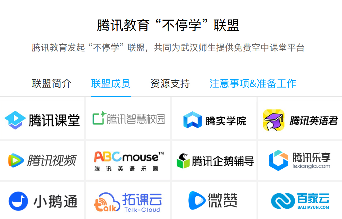 图1:腾讯教育“不停学”联盟成员(局部)