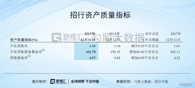 2019年招行的拨贷比和覆盖率继续增长,4.97%的拨贷比、426.78%的覆盖率,就意味着2231亿的贷款拨备总额和2447亿的资产拨备总额,这为招行未来的报表业绩增长奠定了坚实基础,可以保证招商银行未来三五年维持两位数的净利润增长。