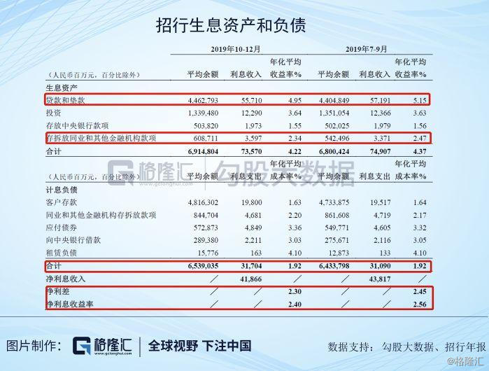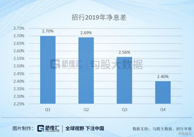 而2019年全年招行净息差为2.65%,同比提升1个基点,最主要的原因是央行今年三次降准,有更多的生息资产投入到信贷市场。但是全年净息差处于整体下滑的趋势。