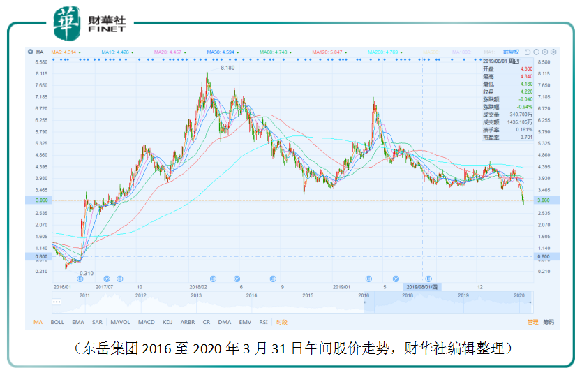 东岳集团近期股价表现并不理想,目前股价已跌至2017年水平。这不仅仅是因为公司的业绩下降与新冠疫情降低市场需求预期。