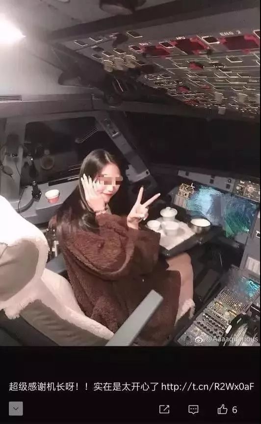 女子随后将照片发到了社交网络上并配文:“超级感谢机长,实在是太开心了”