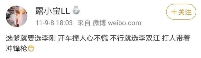 她甚至曾说这样的话:选爹就要选李刚,不行就选李双江。