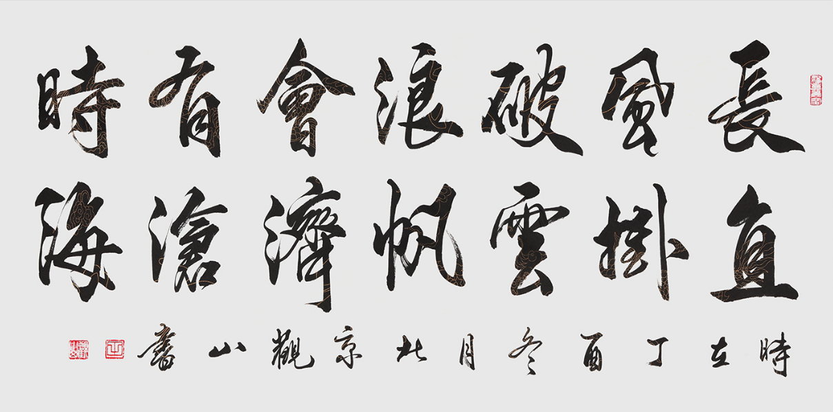 生活中每个人都会遇到不可预料的困难,是退缩,是徘徊不定,还是勇往直前,无所畏惧,李白这一千古名句或许给了我们答案。观山老师此幅励志名言《长风破浪会有时