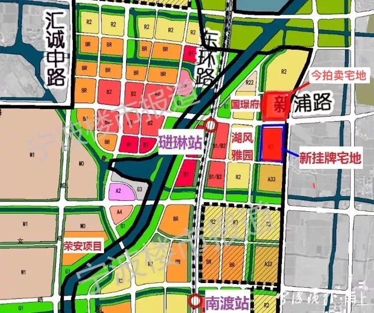地块就在国璟府的东侧,贴隔壁;湖风雅园在地块的西南;距鄞奉线琎琳站大概500米路。