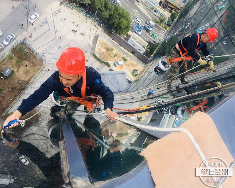 2003年,段波涛从河南老家来兰州打工,当时兰州的高层建筑并不多,第一次接触外墙清洗是在金昌路上,给一栋8层建筑物外墙清洗玻璃。“站在楼顶向下望去,有一种头重脚轻、双脚发软的感觉,头上直冒冷汗。”段波涛回忆第一次悬空作业的感觉,他告诉记者,“虽说只有8层楼,但擦完后落地时,双腿还在发抖打颤。”