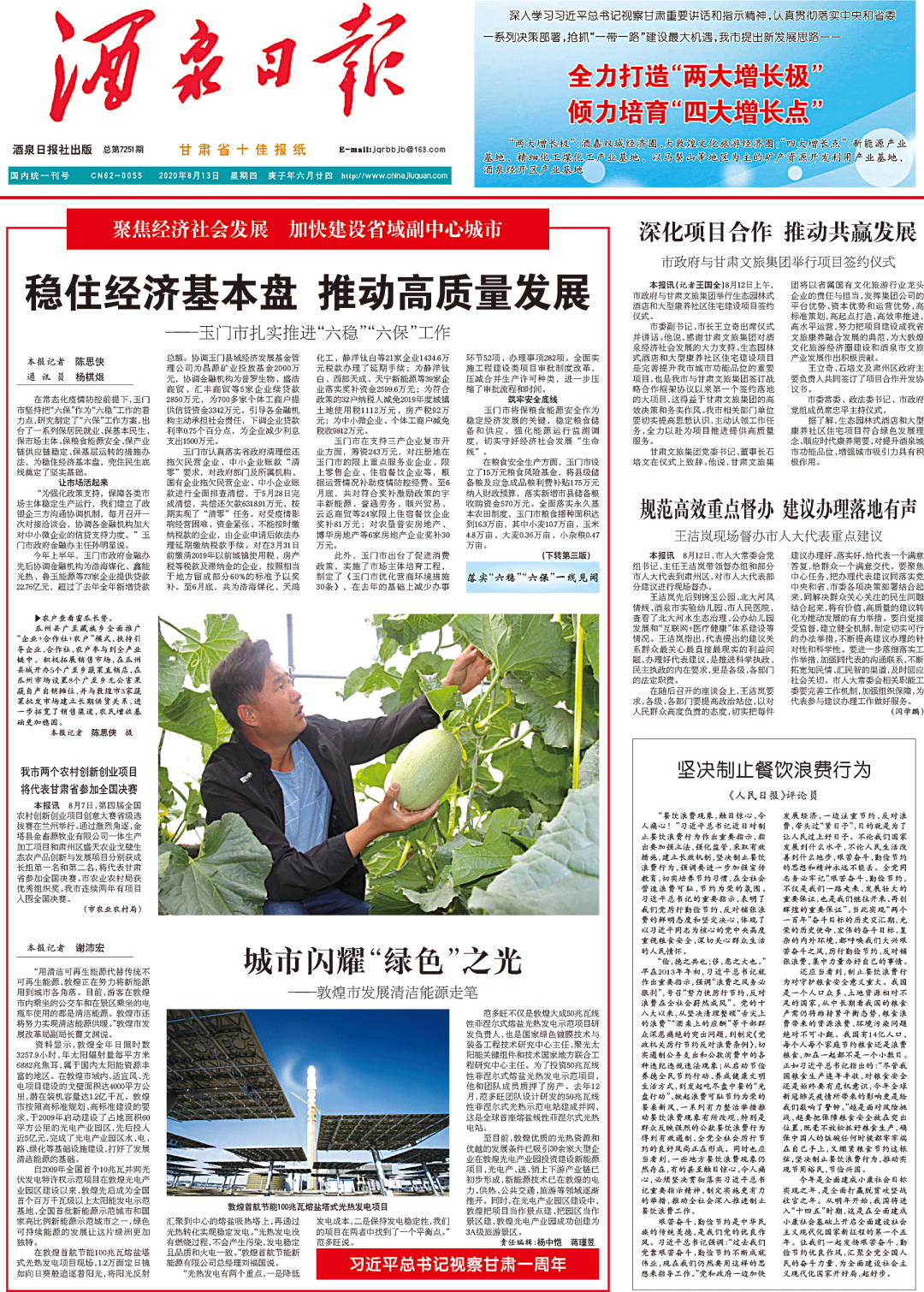 玉门市扎实推进“六稳”“六保”工作(一版)