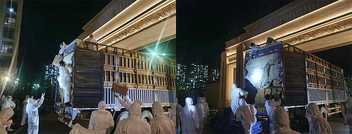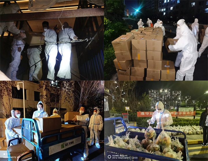 从晚上9点到凌晨2点,配送人员穿着密不透风的防护服,5个多小时汗流浃背、争分夺秒的忙碌,只为将最新鲜的蔬菜尽快送到小区居民手中。大家没有一句怨言,因为他们明白群众利益无小事,民生问题大于天。