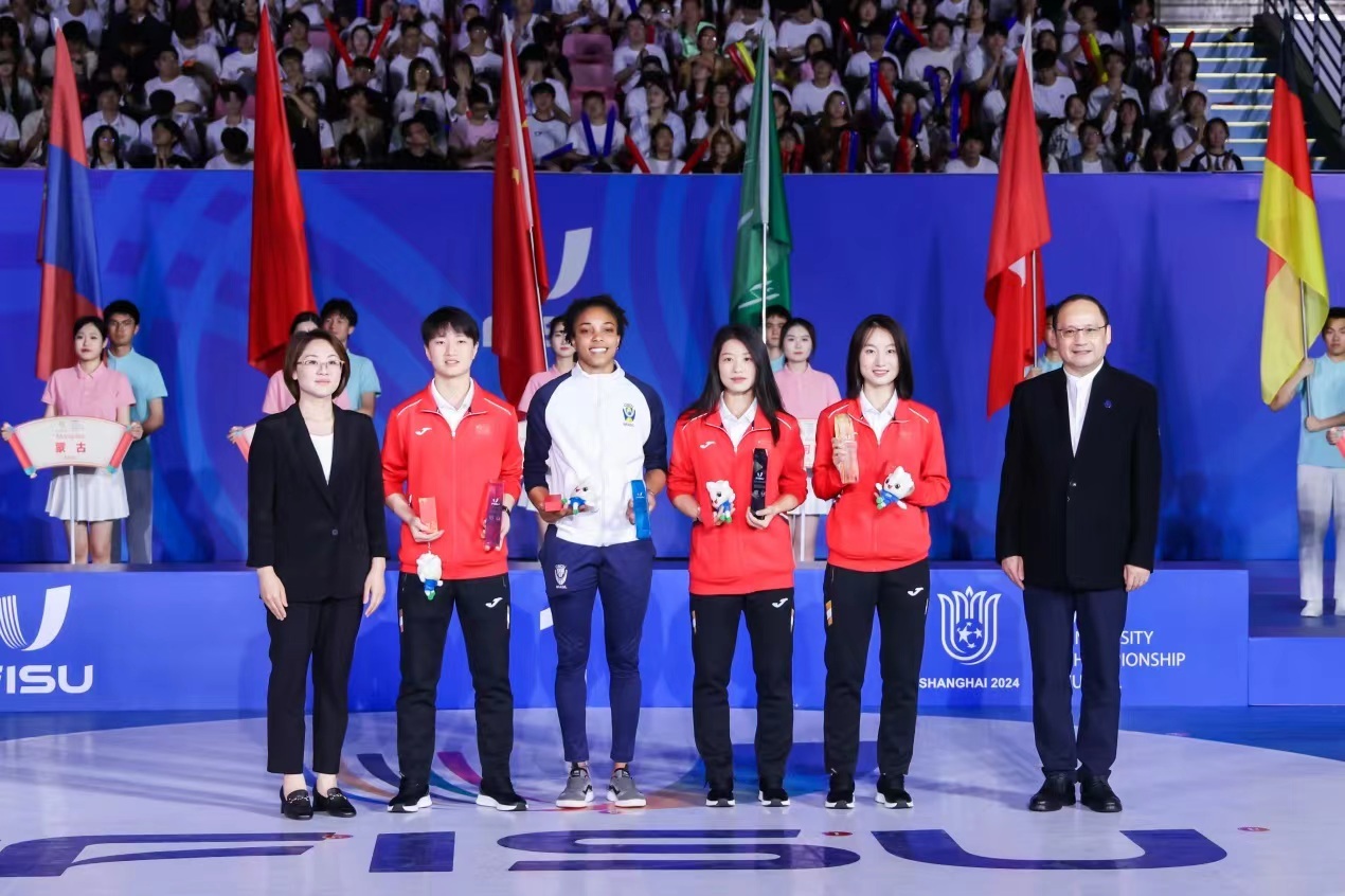 上海市教育委员会副主任王浩在致辞中表示,开赛以来,来自16个国家和地区的21支代表队,展现出了坚韧顽强的大学体育精神,在上海这片“海纳百川 追求卓越”的土地上,留下一个又一个拼搏、奋进的精彩瞬间。本届赛事是促进交流、增进友谊的连心桥,400余名运动健儿在赛场上同台竞技,在赛场外彼此鼓励,从陌生到熟悉,从对手到朋友,一起度过了一段美好时光。愿大家带着这份美好的回忆,继续在各自的领域里追求卓越、创造辉煌。