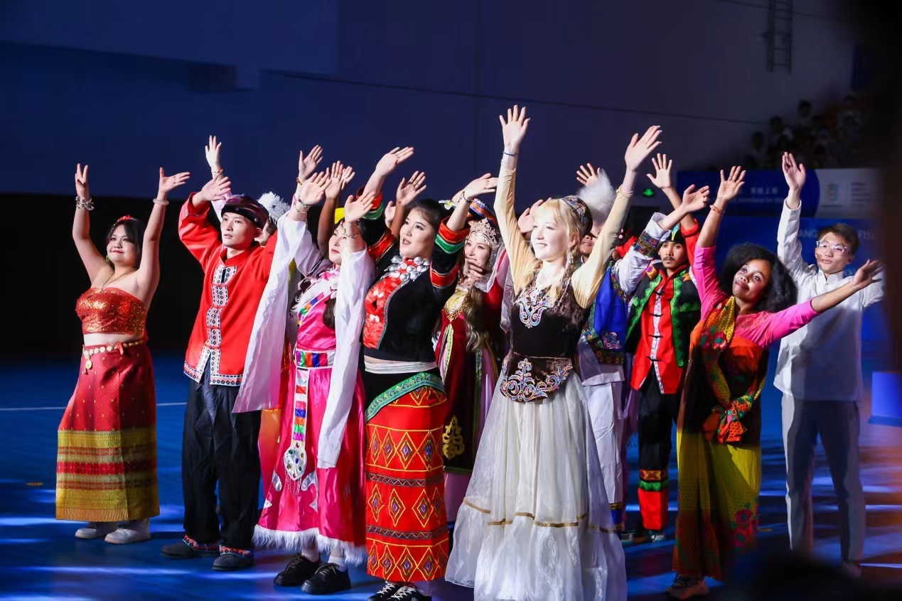 在观众的欢呼声中,由上海各高校学生带来精彩的文艺演出。以《祝福·朋友》《留恋·江南》《回忆·惜别》三个篇章向本次赛事所有参赛选手传递了团队合作、拼搏进取和友谊互助的竞赛精神,海派文化、江南风韵、中国特色的传统文化魅力以及激烈碰撞,奋力竞争、心心相惜的永恒回忆。