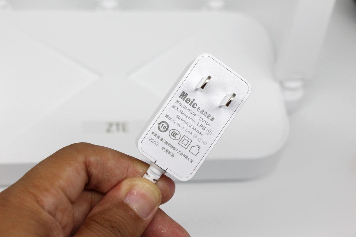 看一下包装内部其实也很简单,路由器,说明书,电源适配器,1.5m网线,就可以满足路由器的连接使用了。网线是超五类网线,对于一般家用传输是足够了的,电源适配器也和家中普通的电源适配器基本保持一致,上面有输入输出的详细信息,可以作为参考。