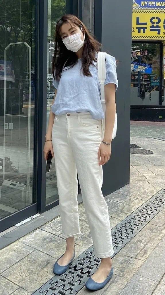 像欧尼这样简单搭配个牛仔裤,就可以在夏日穿出小清新的风范~
