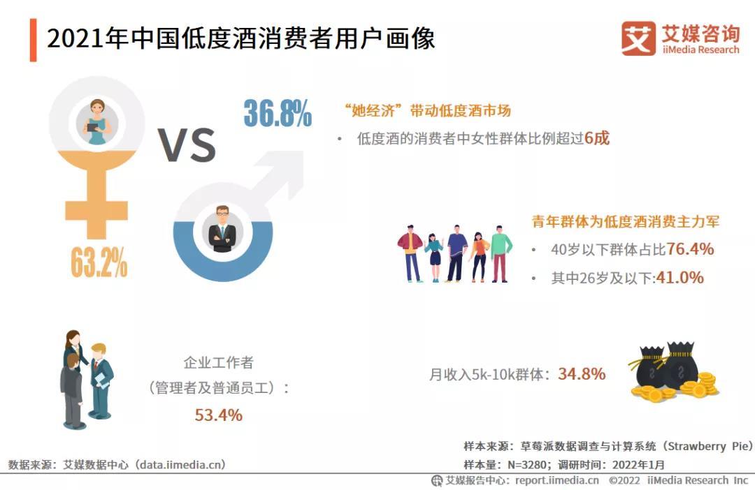 数据显示,中国低度酒消费者中,女性消费者比例超过六成;在社交聚会场景中选择喝低度酒的用户比例为83.3%。艾媒咨询分析师认为,低度酒产品倾向将辛辣的“酒味”淡化,与普通软饮料的味道更为接近,可适用于更多场景。新理念驱动下,“不醉不归”逐渐被“适度微醺”所取代。