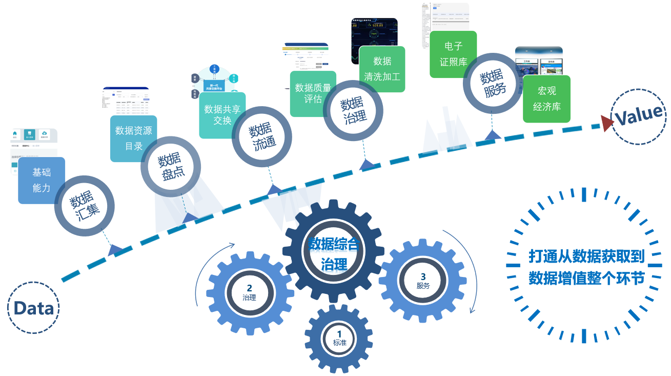 上述一个个看似难以逾越的障碍,在国信优易政务数据综合治理解决方案面前都迎刃而解。国信优易深耕数字政府建设多年,借助服务雄安、厦门、福州等诸多政府客户经验,依托数据操作系统DataOS技术能力与深入行业的理论研究,逐步形成了政务数据综合治理解决方案,提供数据接入、管理、评价、治理、服务等核心支撑能力,打通从数据获取到数据增值整个环节,可满足政府不同程度、不同侧重的治理需求,扩大数据综合治理效能。
