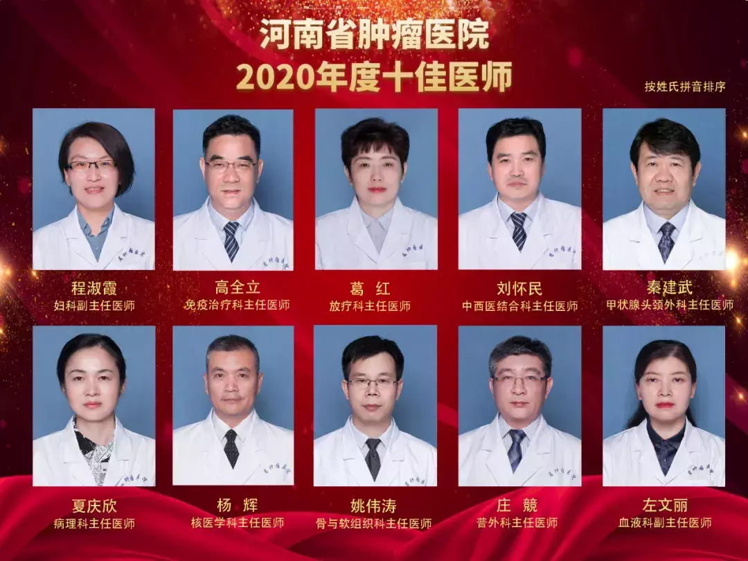 为发挥先进典型榜样引领作用,激励广大医务工作者秉承医者仁心、强化使命担当、当好人民健康的忠诚卫士,持续营造尊医重卫的良好氛围,河南省肿瘤医院院开展了2019—2021年度先进医师集体和个人评选活动。通过推荐、考核、竞赛、公示等环节,经院党委研究,决定授予程淑霞、高全立等20名同志“十佳医师”荣誉称号,授予葛红、杨铁军等10名同志“十佳医保医师”荣誉称号,授予张丽红、张鹏等15名同志“优秀质控员”荣誉称号,授予普外科“第三届腔镜视频剪辑大赛优秀组织奖”,授予冯伟宇、张永磊等22名同志“第三届腔镜视频剪辑大赛优秀个人奖”,授予黄晋熙、冯伟宇等14名同志“第四届腔镜基本技能大赛优秀个人奖”,授予食管肿瘤MDT专家组、胃部肿瘤MDT专家组等5个专家组“MDT优秀团队”荣誉称号,授予任莹坤、张斌等11名同志“ERAS菁英奖”,授予胸外科一病区、泌尿外科病区等4个病区“ERAS优秀团队奖”,授予内科、血液科等6个科室“2019—2020年度伴飞优秀团队奖”。