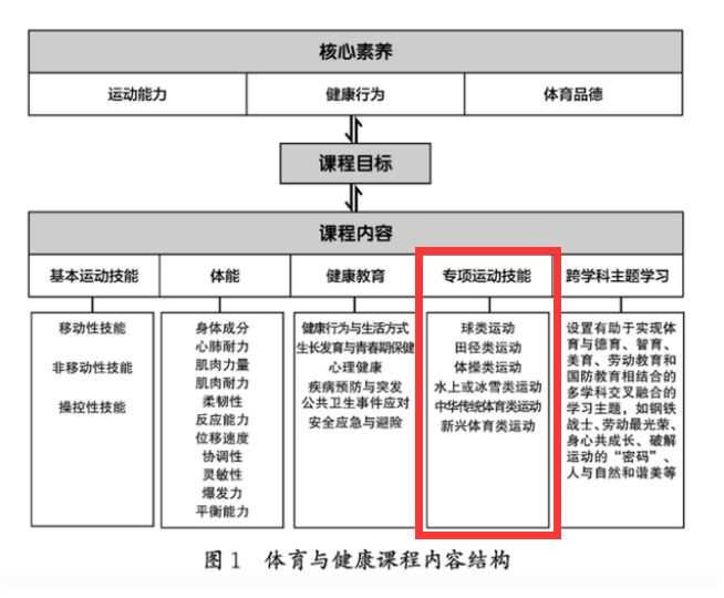《课程标准(2022)》显示,我国义务教育体育课程内容领域正在不断拓宽。除基本运动技能、体能等奠定学生一生身体素质的大项,新课标中的“专项运动技能”版块收录了六大类运动,分别是田径、球类、体操、水上或冰雪、中华传统体育和新兴体育。