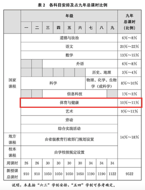 这其中, “体育与健康”课占总课时比例10%-11%,超越外语成为小、初阶段第三大主科。