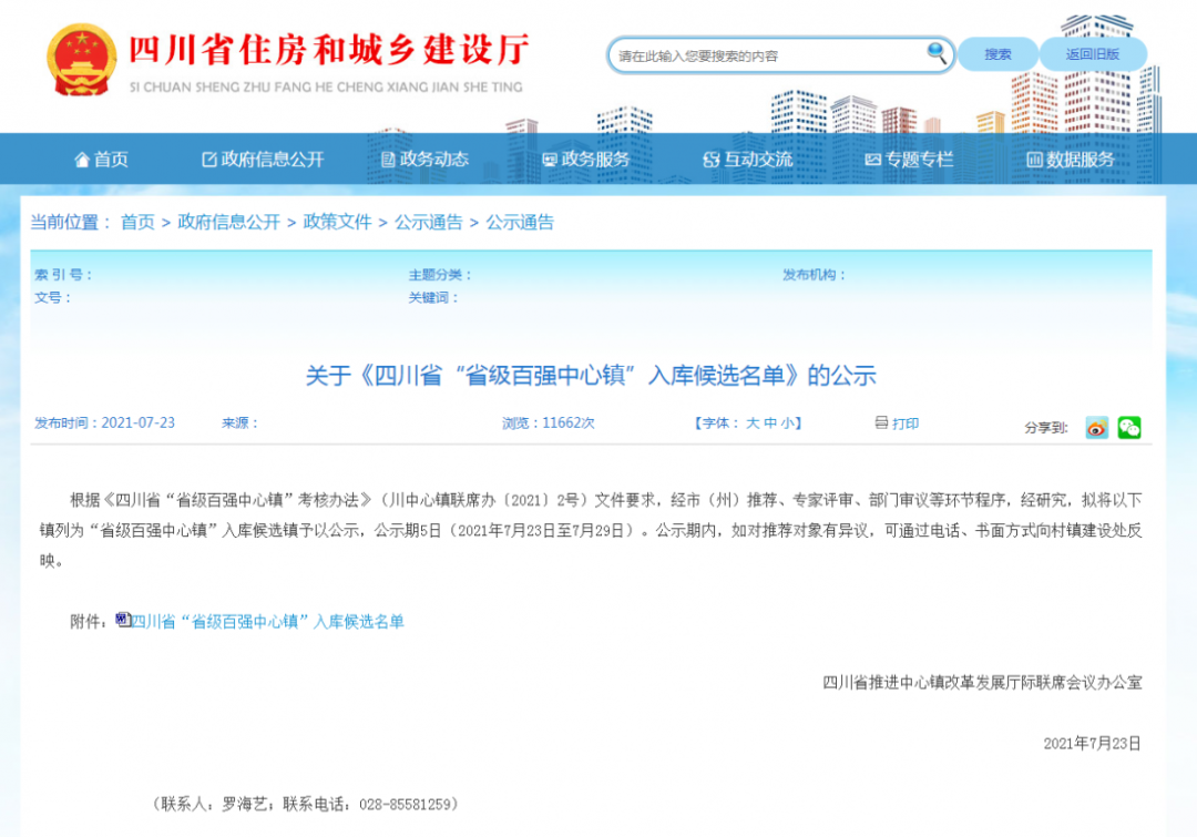 据了解,今年5月我省正式出台了《四川省“省级百强中心镇”考核办法》(以下简称《办法》),明确了省级百强中心镇申报条件、评选程序、监督管理、考核指标体系等内容。根据《办法》,四川“省级百强中心镇”考评正式启动,从2021年起,每年组织考核一批省级百强中心镇,到2023年,共考核命名100个“省级百强中心镇”。