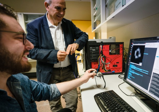 费尔南德斯和他指导的研究生,将一款原型相机与计算机相连