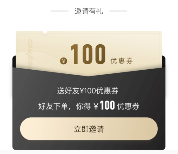 如今,“拉新”的200元返现也进一步缩水至100元。据《财经》新媒体了解,目前在“万里目”APP上推荐新用户并成功下单可得100元优惠券,如邀请用户较多、获得较多优惠券的话,所得奖励同样不能在一单内全部抵扣。