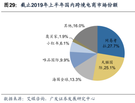 2018年11月,京东宣布旗下跨境电商平台京东全球购升级为“海囤全球”。2019年9月,阿里巴巴和网易宣布达成战略合作协议,前者以20亿美元的价格收购网易考拉。据艾媒咨询测算,收购发生时网易考拉和天猫国际市占率分别约为27.7%和25.1%,收购完成后,阿里旗下跨境电商的市场份额已超50%。