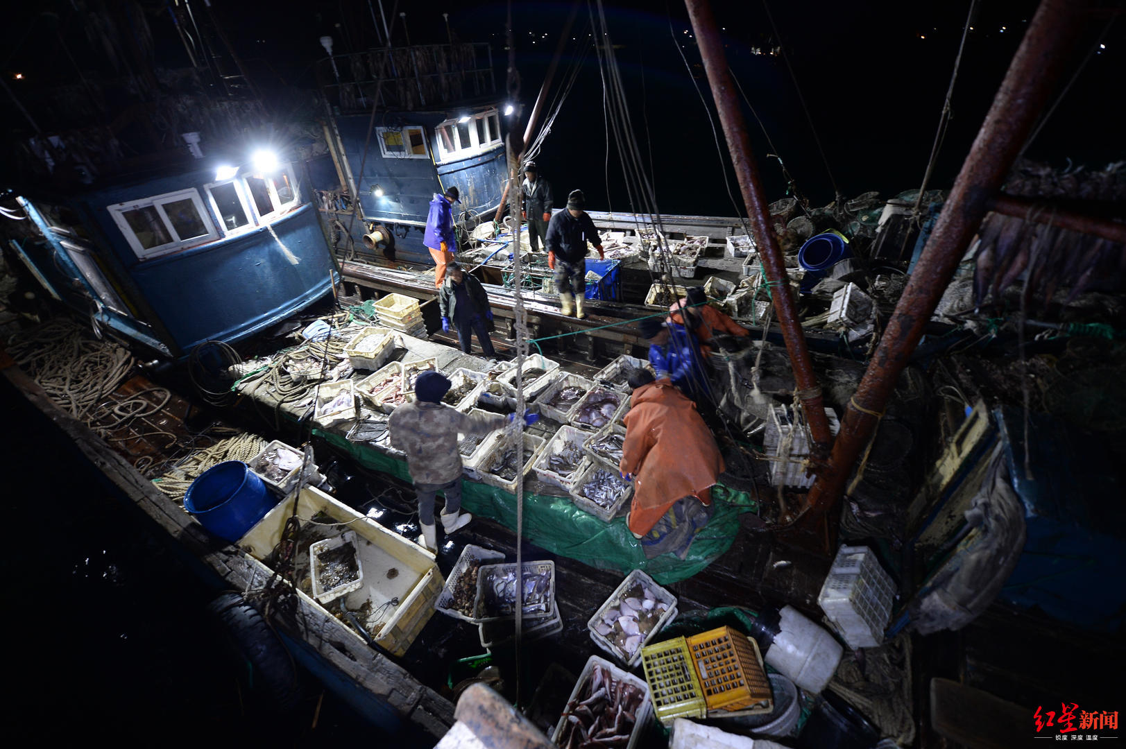 ▲原来在獐子岛企业打工的人现在跟随私人的船出海打渔