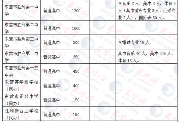 市一中、市二中、市胜利一中、市胜利二中等学校招生人数与去年持平。其中,市一中招生2000人,市二中招生1500人,市胜利一中招生1200人,市胜利二中招生1000人。广饶一中招生人数比去年增加100人,招生2860人。河口一中、垦利一中、利津一中、市胜利三中等高中学校招生人数与去年相比略有减少。