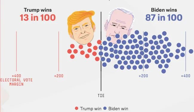 正如各种全国性民调所显示的预测,拜登以巨大优势赢得大选的概率很高。