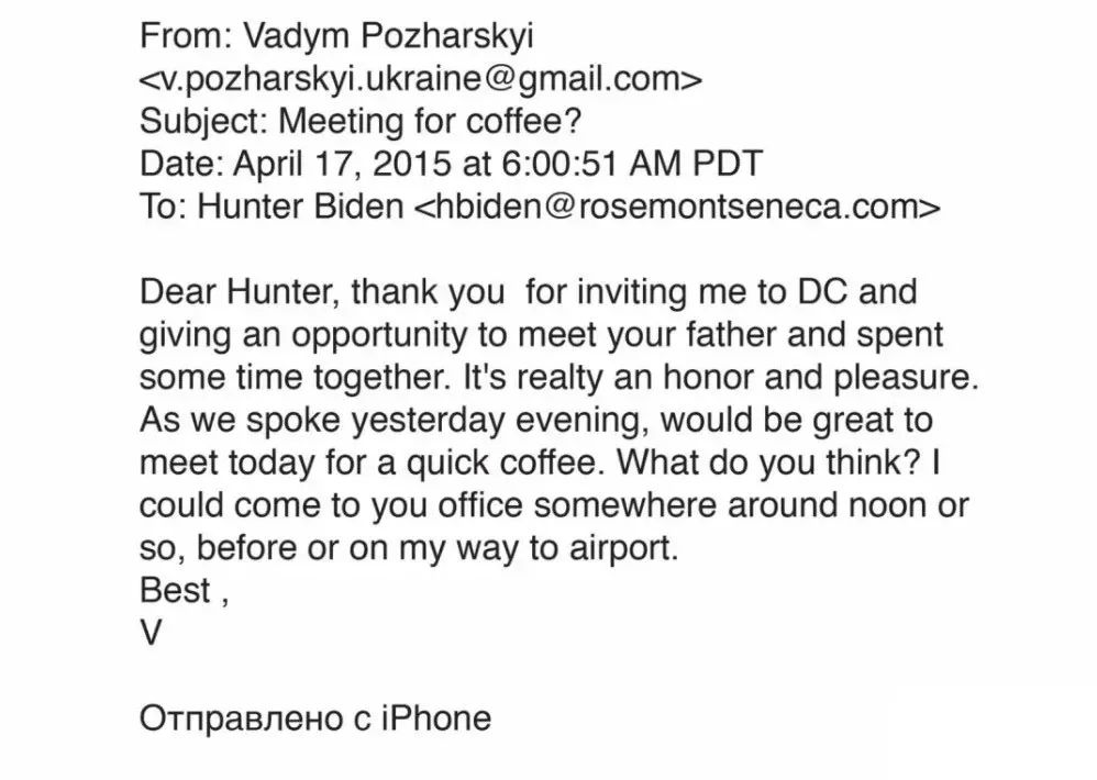 当时的一封邮件就显示,Burisma高管瓦迪姆-波扎尔斯基,就向亨特咨询了“如何利用自己的影响力”。