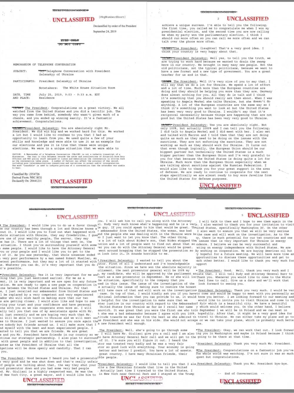白宫还被迫公布了川普与乌克兰新一任总统泽连斯基的通话记录,其中川普的确或明示或暗示,希望乌克兰能重启调查。