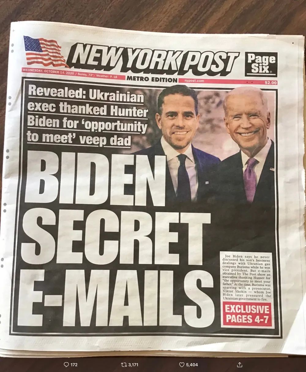 《纽约邮报》报道称,这些邮件来自拜登家乡和所住的特拉华州的一家电脑修理店。