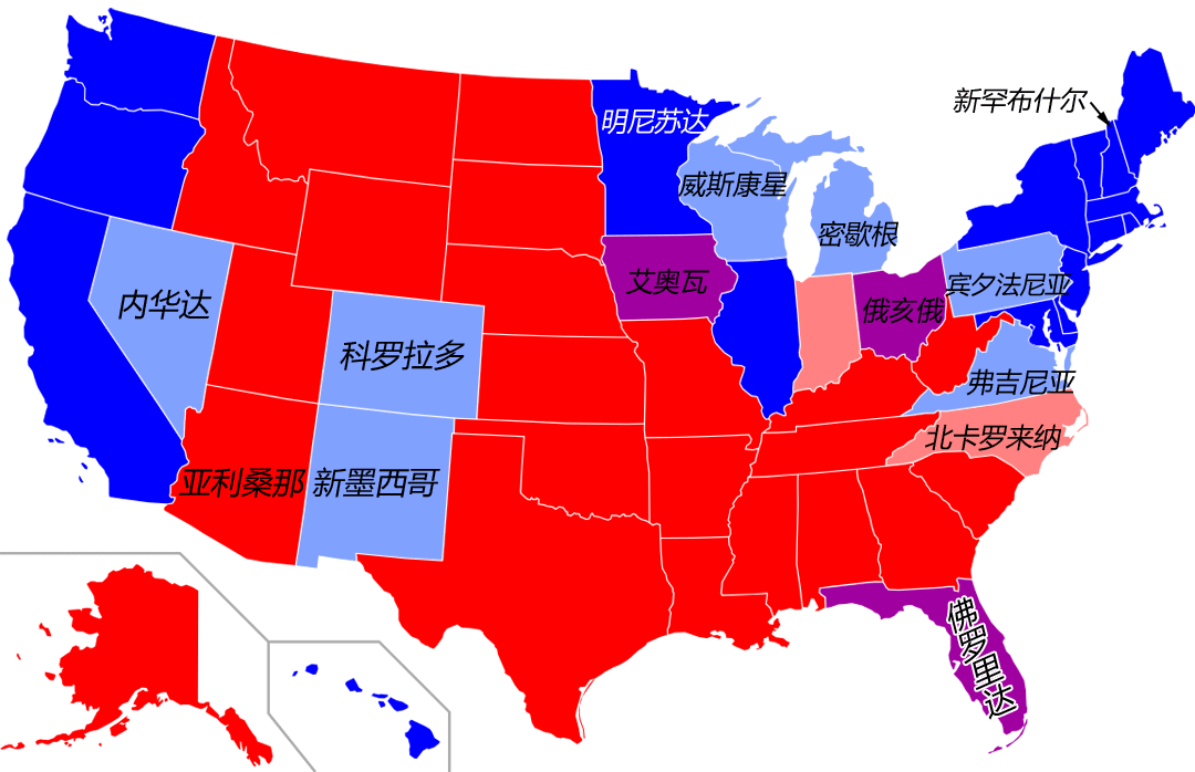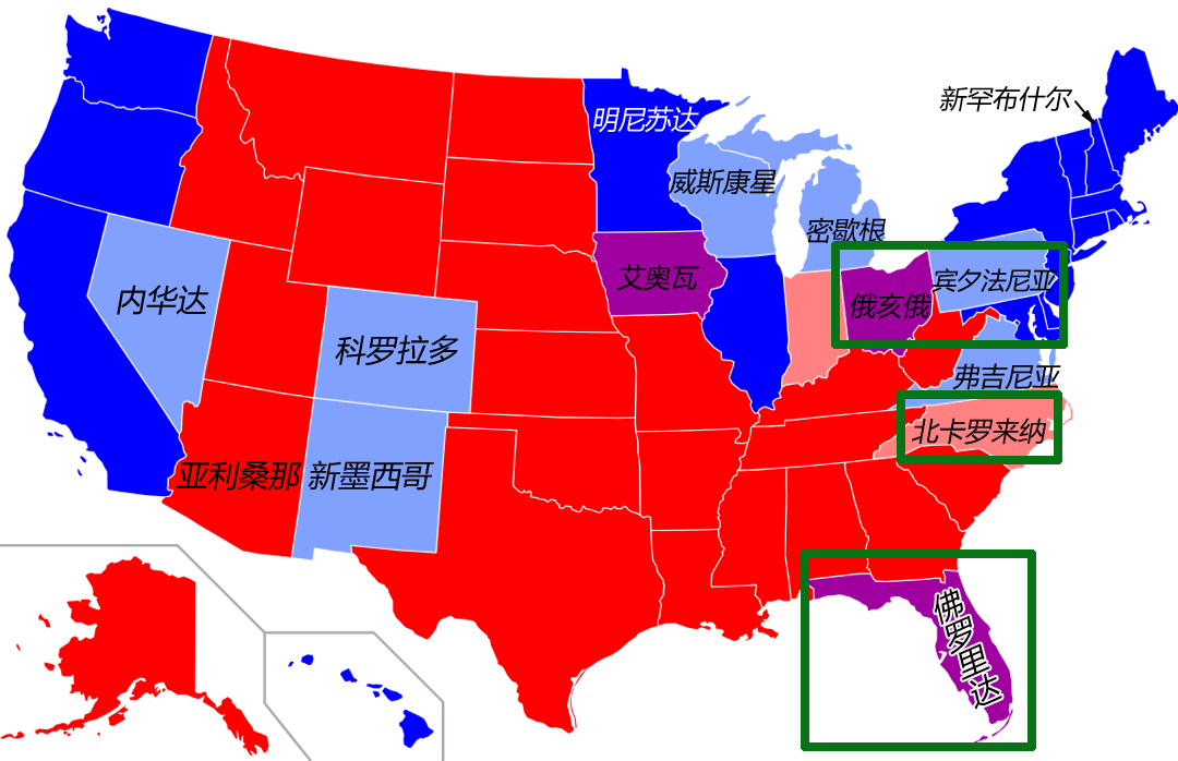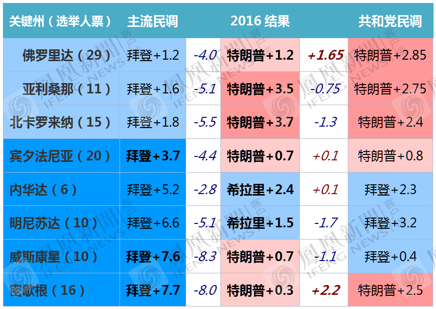 这涉及多个关键州纵横多维度的比较,文字的呈现力远不如图表,制表如下: