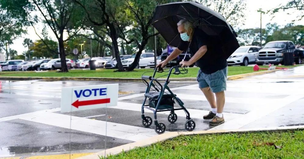 其实,如果有恶劣天气阻挡投票,反而才是天助拜登——因为相当大比例的民主党支持者、这次倒向拜登的中间选民,已经投完票了。