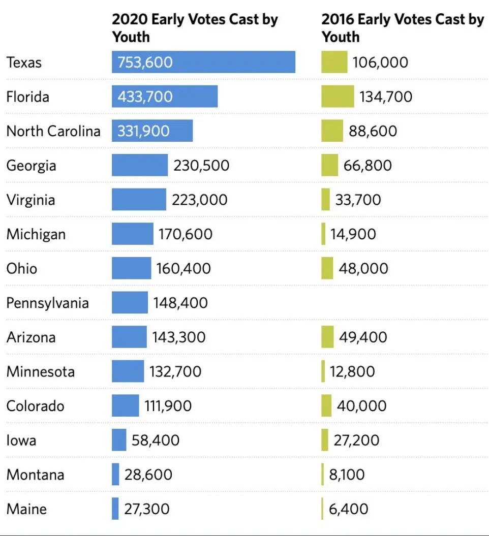 要问今年美国大选真正的“十月惊奇”是什么?当然是提前投票率。