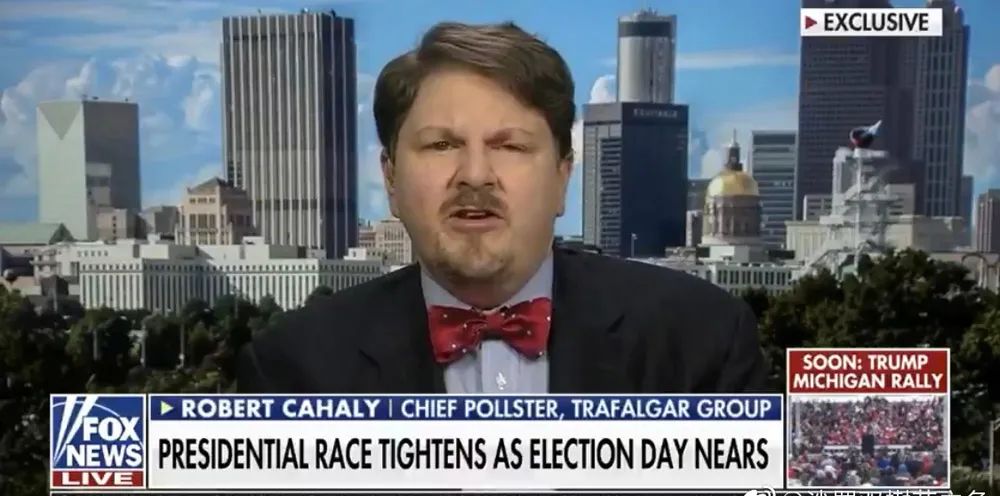 Trafalgar首席民调专家卡哈利(Robert Cahaly)周二晚在FOX说,他认为特朗普会再次当选,原因是其他民调没有统计总统的“隐藏选票”。