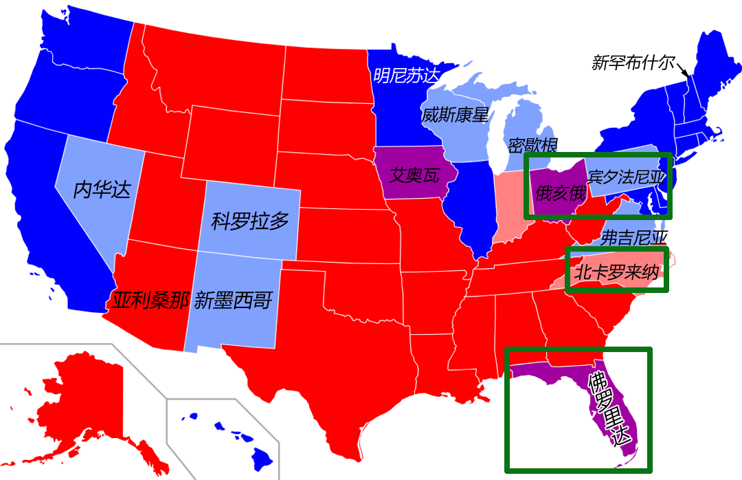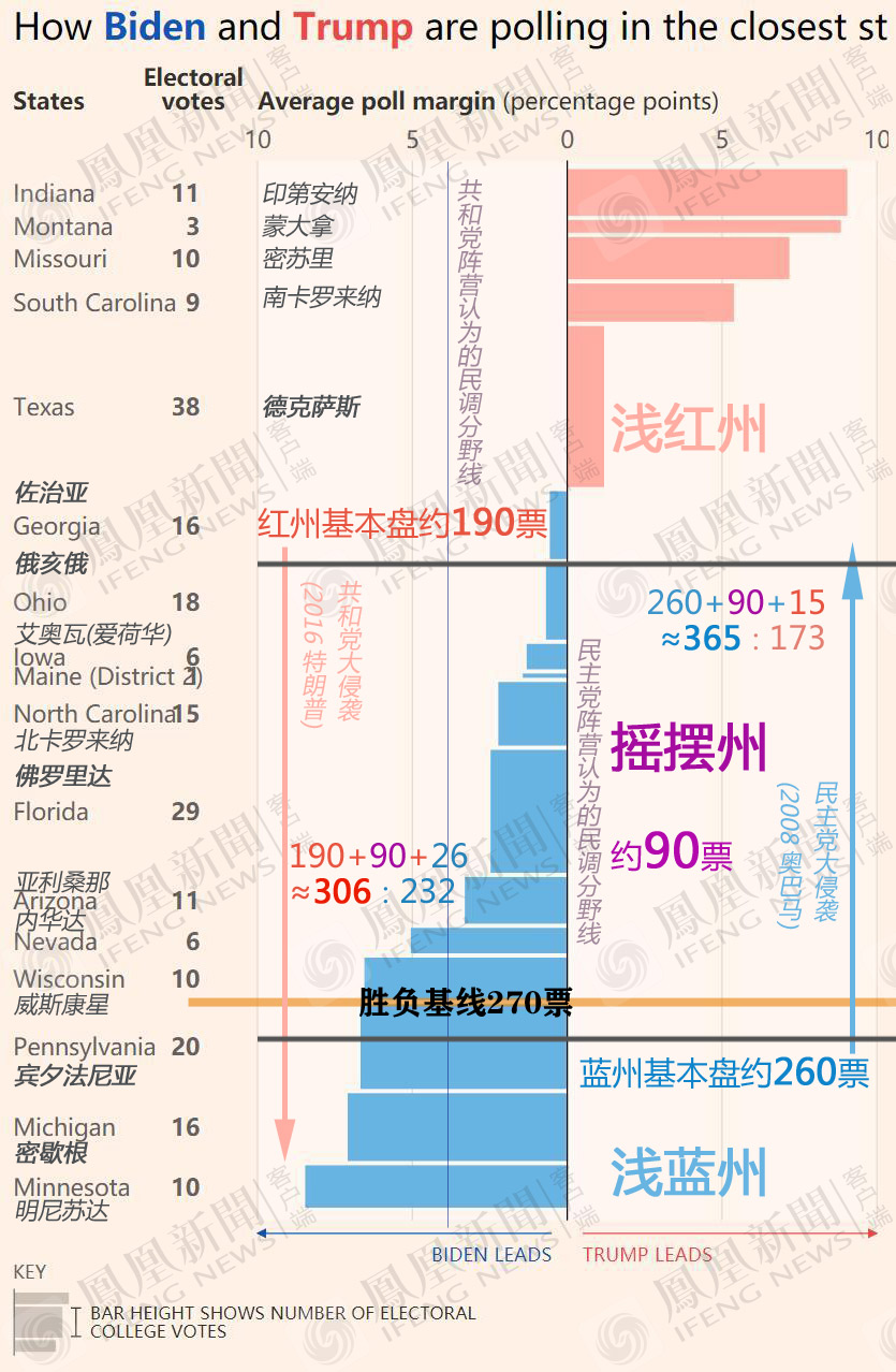因此,佛州计票结果可以在当天出炉。我们知道,拜登只要赢下任何一个大摇摆州(佛州、宾州、俄州、北卡),就能赢得大选。