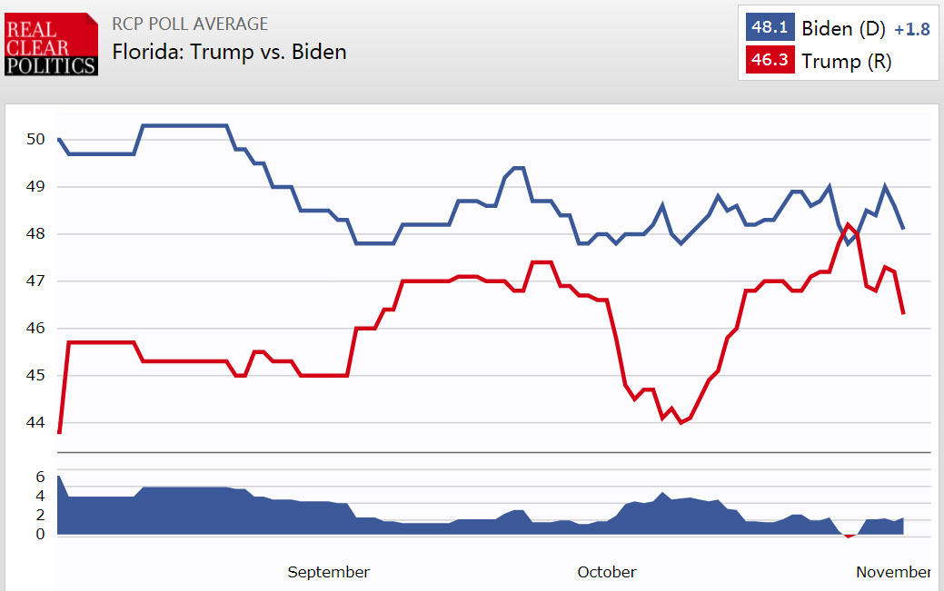 如果周三上午显示拜登在佛州领先,那么特朗普也基本宣告出局。