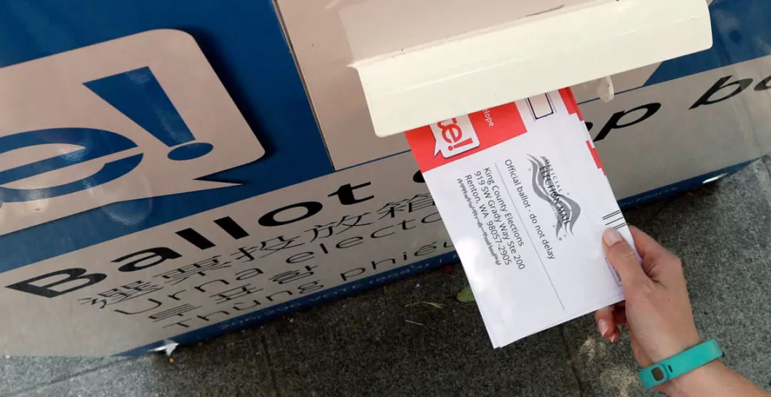 邮寄投票Voting by Mail,指的是各州将选票寄给选民,选民再将邮票密封署名后,寄出去。