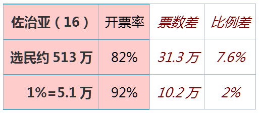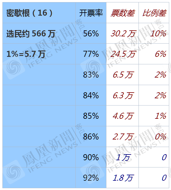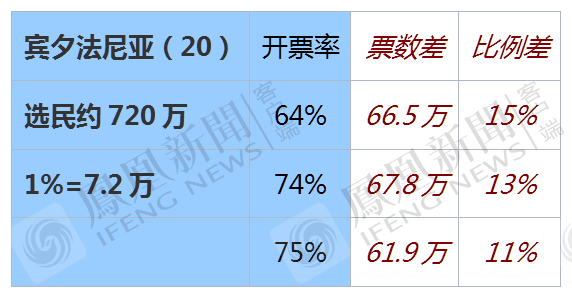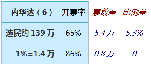 如果民主党获票率高于65%,即可弥补选票差。